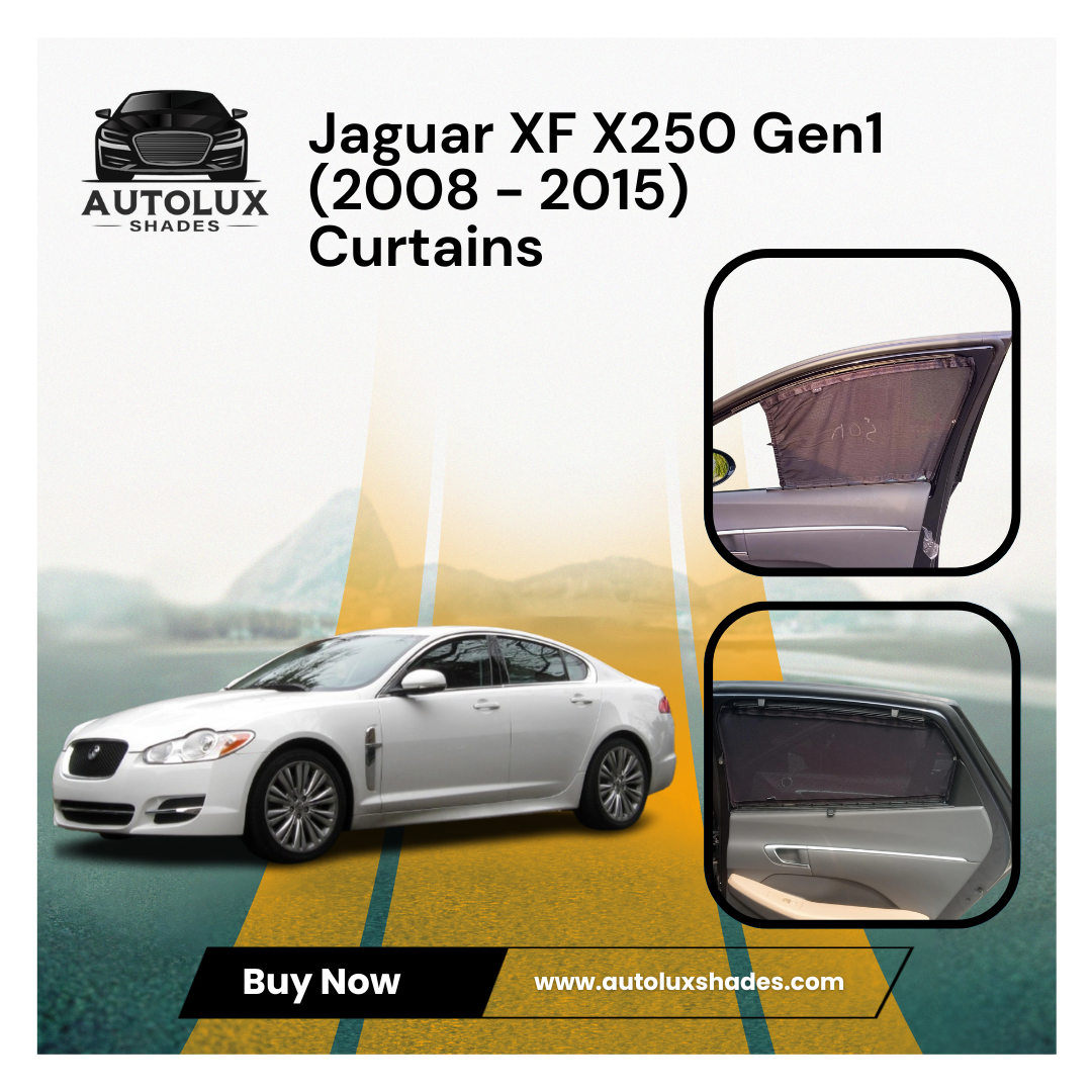 Explore our full range of Jaguar curtains in the Jaguar category, featuring custom-fit solutions for multiple Jaguar models. For the XF X250 Gen1, our shades are engineered to align perfectly with the vehicle’s window contours, ensuring flawless installation and complete coverage.