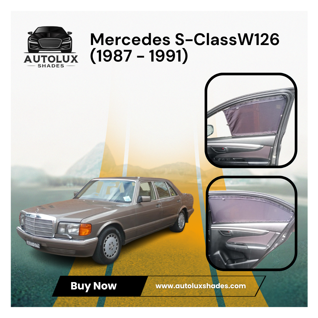 Add sophistication and comfort to your Mercedes S-Class W126 (1987–1991) with Autolux Shades. These car curtains are crafted specifically for the S-Class W126, offering UV protection, privacy, and a cooler cabin. Enjoy luxury and comfort on every drive, with our custom-fit curtains designed to perfectly match your car’s interior. Explore the full range of Mercedes car curtains designed for various models.