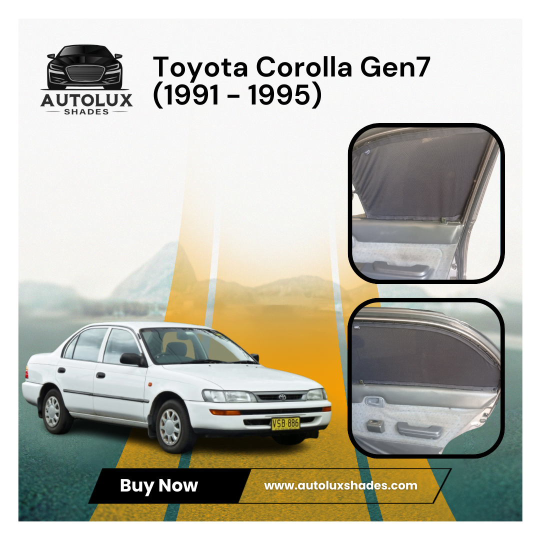 Maximize your privacy and comfort with custom-fit curtains for your Toyota Corolla Gen7 (1991 – 1995) .Easy to install on all 4 doors, these curtains provide a sleek look while protecting against harmful UV rays. Perfect for long road trips or daily commutes.